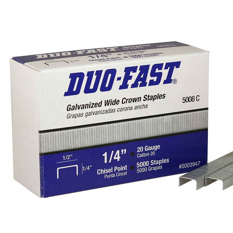 Ideal for light-duty fastening tasks — including upholstery, insulation, house-wrap, roof paper, panel backing, or light wood assembly — the 5008-C wide-crown staple delivers reliable performance for both residential and commercial applications.